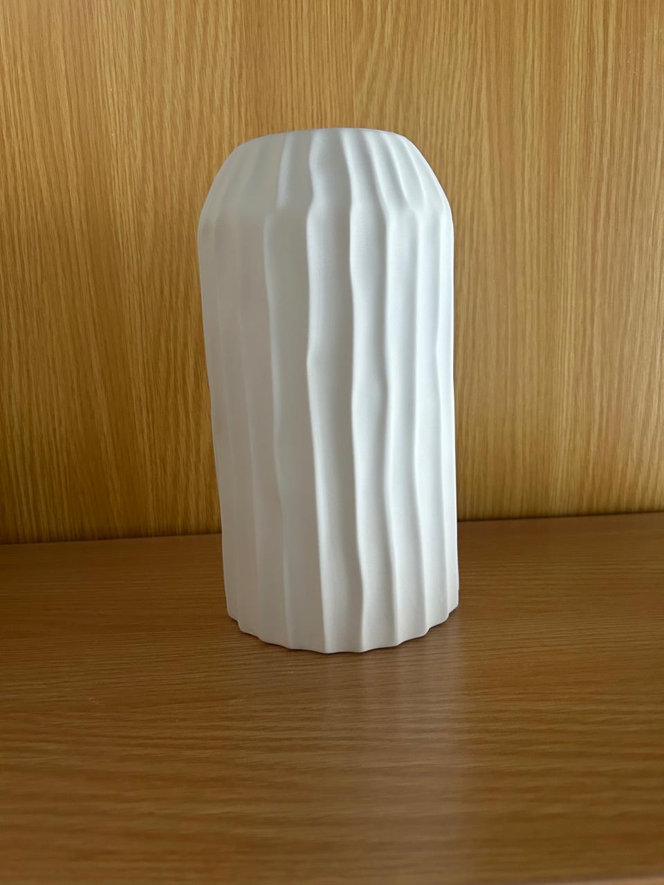 استمتع بتجربة ديكور راقية مع فازة السيراميك الأبيض المطفي ذات التصميم المتموج العصري. هذه القطعة الفريدة تضيف لمسة من البساطة الفخمة والأناقة الهادئة لأي ركن في منزلك أو مكتبك، حيث يبرز اللون الأبيض النقي جمال التفاصيل البارزة والانسيابية في التصميم.